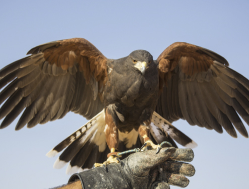 Cuando el proyecto lo requiere, incorporamos los halcones al equipo. Esto se hace en casos muy concretos, puesto que en la mayoría de las situaciones la cetrería no es tan eficaz como muchas personas creen. Es adecuada para grandes espacios abiertos como aeropuertos, vertederos y grandes extensiones, pero tiene poca utilidad en entornos urbanos. Se emplea preferiblemente en clientes que requieren un servicio a largo plazo.